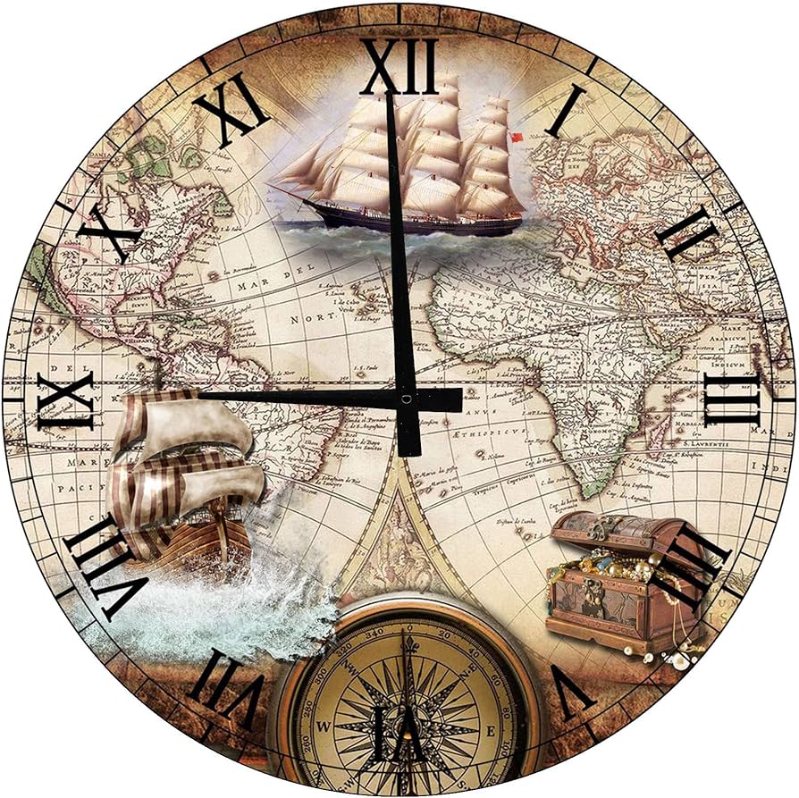 Amazon.com: Old World Map Compass Nautical Large Round Wall Clock