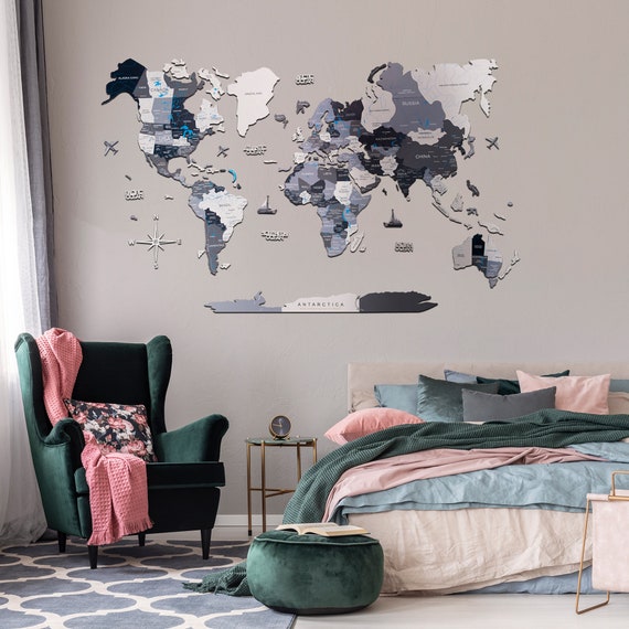 Amazon.com: HYPERI Multilayered 3D Wooden World Map Wall Decor